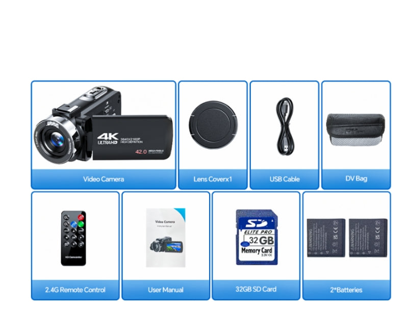 DE: AC13BAXXXX, Video Camera 4K Camcorder, 42 MP Video Recorder for Vlogging YouTube 18X Digital Zoom 4K Webcam Camera with 3 Inch Screen 270° Rotatable Compact Camera for Travel with 2 Batteries, 32 GB Card, Remote