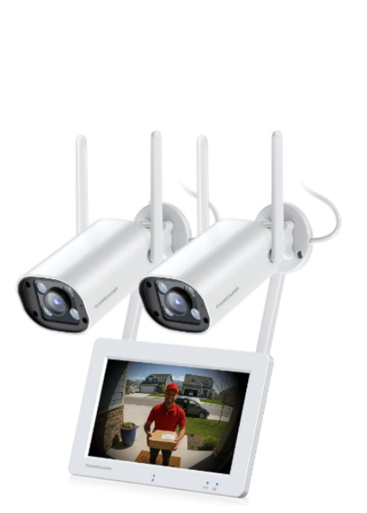 JP: SC27-XL-JP001, 【タッチパネルモニター付き・内臓バッテリー】 防犯カメラ 屋外 無線 モニター付き 簡単設置 監視カメラ 屋外 2台セット 7インチモニターNVR機 双方向通話機能 光音威嚇24時間録画 遠隔監視 4チャンネルまで増設可 IP66防水防塵