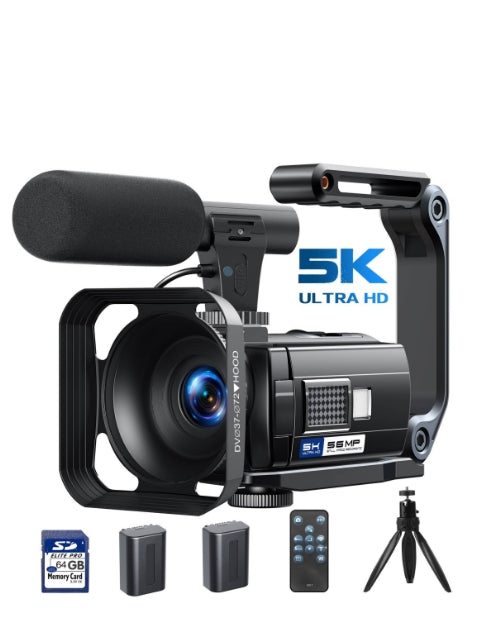 US: AC12, 5K 56MP Camcorder Video Cameras Vlogging Camera with with 64GB SD Card for Youtube